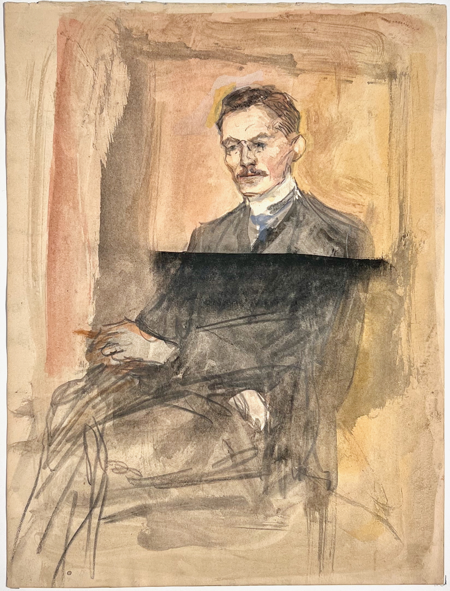 Unser Aquarell einer Portraitstudie zeigt Verso einen Billardspieler und mehrere japanische Akrobaten nach dem 8. Band des "Manga" von Hokusai. Zeichnungen und Studienblätter Mackes besitzen ihren eigenen ästhetischen Reiz, sie offenbaren Entwicklungen des künstlerischen Œuvres oder geben interessante biographische Zusammenhänge und Gedankengänge. Unser Aquarell entsteht während Mackes Studienaufenthaltes in Berlin 1908, wo er bei einem befreundeten Gerichtsreferendar aus Bonn, Dr. Vincenz Hundhausen, in Schöneberg unterkommt. Weitere Studien dieser Person finden sich in den Skizzenbüchern, so erwähnt seine Frau Elisabeth, Hundhausen habe „mit Interesse und Stolz die künstlerische Entwicklung“ Mackes verfolgt und dieser habe von ihm mehrere Portraitskizzen gemacht.