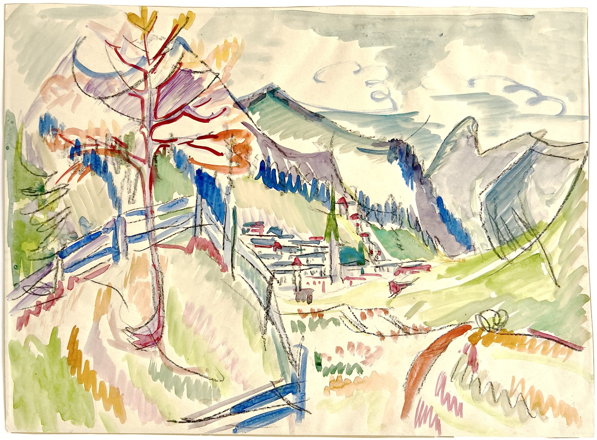 Bereits im jungen Alter von 25 Jahren gründet Ernst Ludwig Kirchner 1905 die Künstlervereinigung „Die Brücke“. Zusammen mit seinen Kommilitonen Erich Heckel, Gritz Bleyl und Karl Schmidt-Rottluff, die er während seines Architekturstudiums in Dresden kennen lernt, wollen sie traditionelle, konservative Kunsttraditionen überwinden und neue Ausdrucksformen etablieren. Sie alle verstehen sich selbst als Autodidakten. Kirchner kann als führende Kraft dieser Gruppe mit ihrer unmittelbar erfassten, antibürgerlichen Kunstauffassung gelten, deren Werke sich auf das Notwendigste reduzieren, mit rohem Duktus und intensiven Farben. Und auch wenn sich der Künstlerverein, den wir heute als Keimzelle des deutschen Expressionismus betrachten, 1913 nach acht Jahren wieder auflöst, sollten Kirchners wichtigste Arbeiten erst noch entstehen: 1911 umgesiedelt nach Berlin wird die Großstadt des Künstlers bevorzugtes Bildmotiv, wie die großformatige, ikonische Straßenszene „Potsdamer Platz“ eindrucksvoll belegt. 1915 zieht der Künstler wie so viele andere Zeitgenossen mit ihm freiwillig in den Krieg – ein verhängnisvoller Schritt, infolgedessen Kirchner sich nach körperlichem und seelischem Zusammenbruch in einem Sanatorium bei Königstein (Taunus) behandeln lässt. Ab 1917 sprechen wir vom Spätwerk des Künstlers, dass sich nach seinem Umzug nach Davos in die Schweiz durch tapisserie-ähnliche Landschaftspanoramen und ausdrucksstarke Figurenbilder auszeichnet. Der sogenannte „Neue Stil“ ist gekennzeichnet durch eine linear abstrahierende, flächige Malweise. Die Nationalsozialisten diffamieren Kirchner als „entarteten“ Künstler und beschlagnahmen 639 seiner Werke. Verzweifelt und von Krankheit und Wahn geplagt, begeht Kirchner – nachdem er viele seiner eigenen Skulpturen und Werke zerstört – in Frauenkirch-Wildboden 1938 Selbstmord.