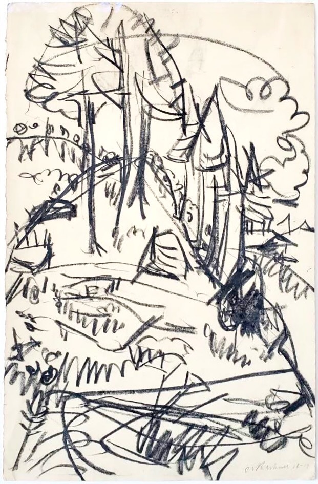 Bereits im jungen Alter von 25 Jahren gründet Ernst Ludwig Kirchner 1905 die Künstlervereinigung „Die Brücke“. Zusammen mit seinen Kommilitonen Erich Heckel, Gritz Bleyl und Karl Schmidt-Rottluff, die er während seines Architekturstudiums in Dresden kennen lernt, wollen sie traditionelle, konservative Kunsttraditionen überwinden und neue Ausdrucksformen etablieren. Sie alle verstehen sich selbst als Autodidakten. Kirchner kann als führende Kraft dieser Gruppe mit ihrer unmittelbar erfassten, antibürgerlichen Kunstauffassung gelten, deren Werke sich auf das Notwendigste reduzieren, mit rohem Duktus und intensiven Farben. Und auch wenn sich der Künstlerverein, den wir heute als Keimzelle des deutschen Expressionismus betrachten, 1913 nach acht Jahren wieder auflöst, sollten Kirchners wichtigste Arbeiten erst noch entstehen: 1911 umgesiedelt nach Berlin wird die Großstadt des Künstlers bevorzugtes Bildmotiv, wie die großformatige, ikonische Straßenszene „Potsdamer Platz“ eindrucksvoll belegt. 1915 zieht der Künstler wie so viele andere Zeitgenossen mit ihm freiwillig in den Krieg – ein verhängnisvoller Schritt, infolgedessen Kirchner sich nach körperlichem und seelischem Zusammenbruch in einem Sanatorium bei Königstein (Taunus) behandeln lässt. Ab 1917 sprechen wir vom Spätwerk des Künstlers, dass sich nach seinem Umzug nach Davos in die Schweiz durch tapisserie-ähnliche Landschaftspanoramen und ausdrucksstarke Figurenbilder auszeichnet. Der sogenannte „Neue Stil“ ist gekennzeichnet durch eine linear abstrahierende, flächige Malweise. Die Nationalsozialisten diffamieren Kirchner als „entarteten“ Künstler und beschlagnahmen 639 seiner Werke. Verzweifelt und von Krankheit und Wahn geplagt, begeht Kirchner – nachdem er viele seiner eigenen Skulpturen und Werke zerstört – in Frauenkirch-Wildboden 1938 Selbstmord.