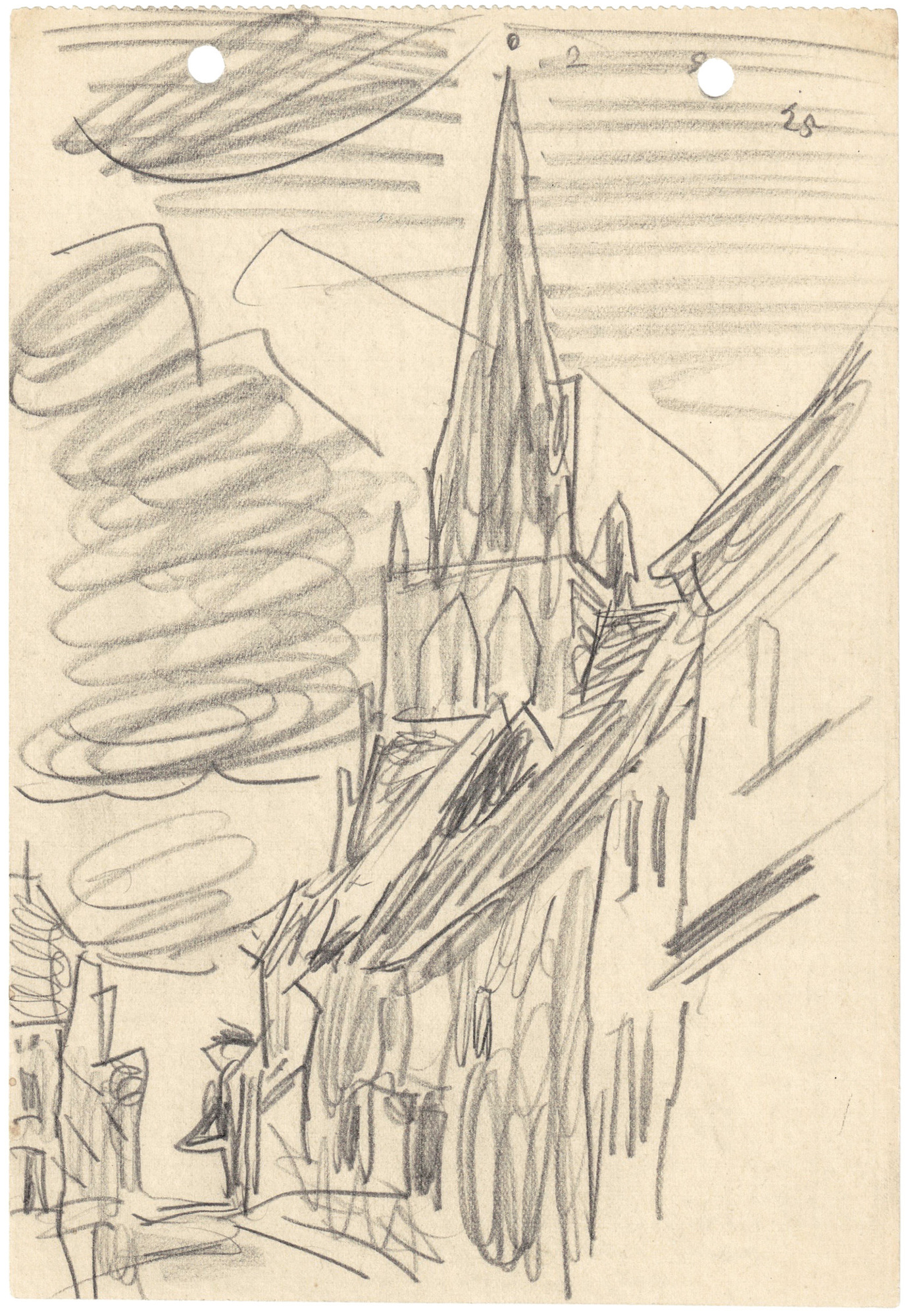 Bleistift auf Velin (am Oberrand perforiert und vom Künstler gelocht)